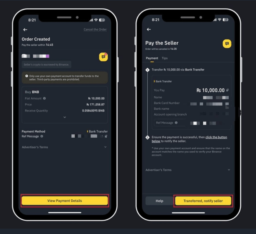 Ensuite, vous verrez les détails de votre commande, et le montant de BNB que vous allez obtenir. Vérifiez les détails du paiement et effectuez le paiement selon les conditions du vendeur.