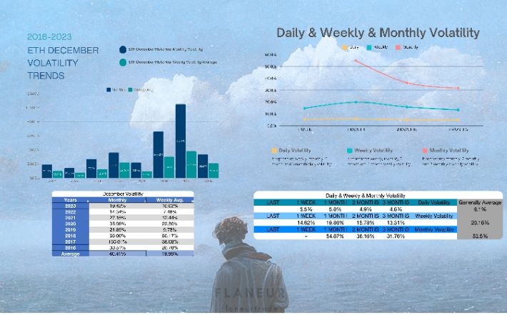 L'ETH est entré dans décembre à 3700, et nous pourrions voir une volatilité mensuelle de 40 % et hebdomadaire de 19 %. Notre plage de prix est de 2200 à 5200 mensuellement et de 3000 à 4400 hebdomadairement. Nous pouvons procéder avec notre plan de jeu en conséquence. Le niveau de 3250 agira comme une zone de pivot, avec 3150 et 3000 servant de zones de soutien en dessous.