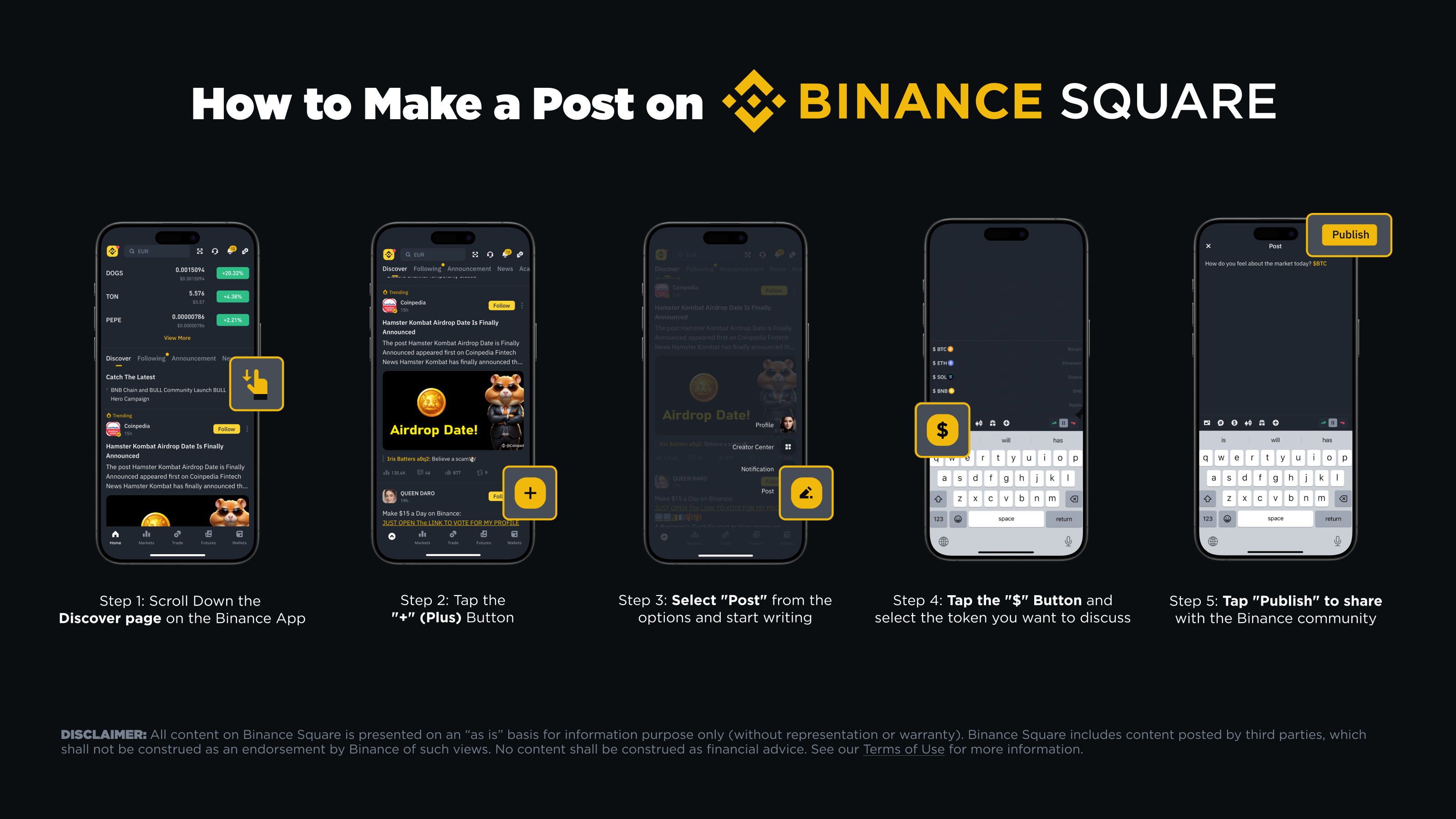2. Faites un post éligible avec n'importe quel cashtag de coin (par exemple, $BTC ) et au moins 50 caractères. Postez chaque jour pour maximiser vos chances !