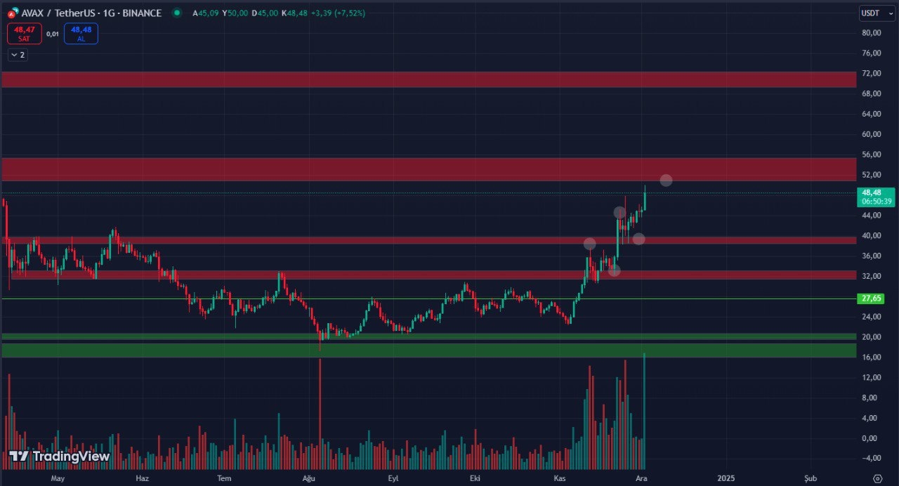 En général, si AVAX continue de rester haussier et dépasse ce niveau, nous pouvons également nous attendre à un mouvement haussier marqué à court terme. D'un autre côté, la zone de repli du côté inférieur pourrait se situer à environ 39 $, ce qui en fait l'endroit idéal pour accumuler des valeurs sûres.