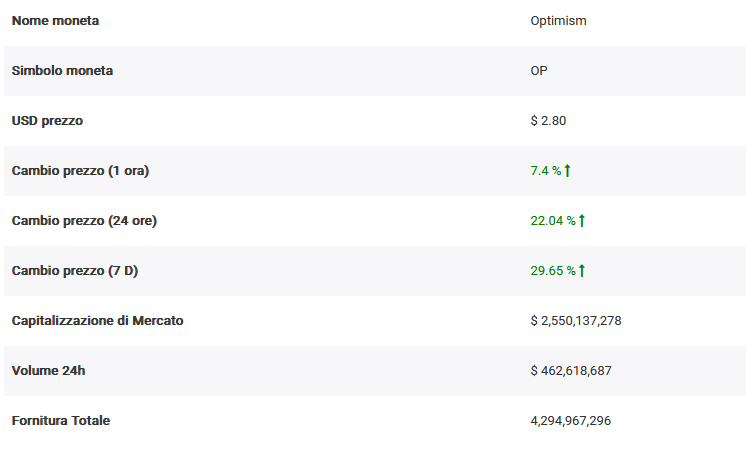 Depuis la dernière mise à jour, Optimism se négocie à environ 2,80 $.