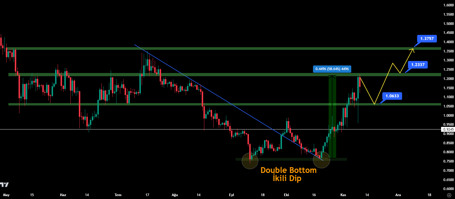 L'arbitrage ( #ARB ) a augmenté de 58 % avec son mouvement à la hausse au cours des 21 derniers jours. Le point de vue technique de #Arbitrum , qui fait partie des projets les plus précieux de l’écosystème des cryptomonnaies, est le suivant. Après une retraite, les cibles indiquées par la flèche jaune peuvent être suivies.