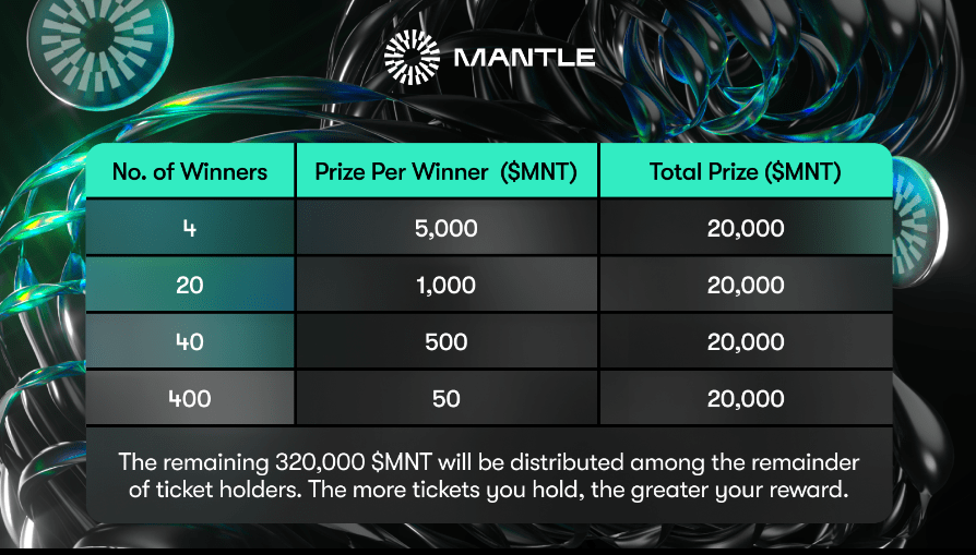 Le pool de récompenses de 1 million de MNT est divisé en un pool de loterie de 400 000 et un pool de tâches L3 de 600 000.