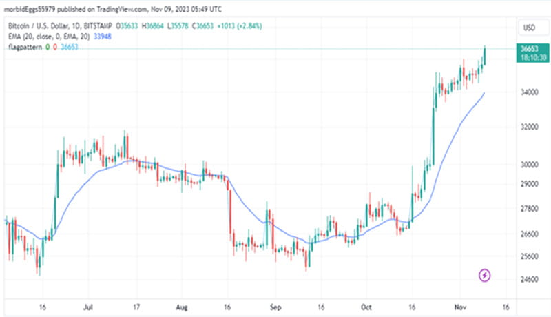 Avec l’augmentation des possibilités d’approbation au comptant des ETF Bitcoin, l’optimisme a augmenté sur le marché de la cryptographie et le prix du Bitcoin a augmenté de plus de 30 % au cours du mois dernier. Au moment de la rédaction de cet article, Bitcoin se négocie dans une fourchette de prix de 36 650 $, soit une augmentation de 3,75 % par rapport à la veille.