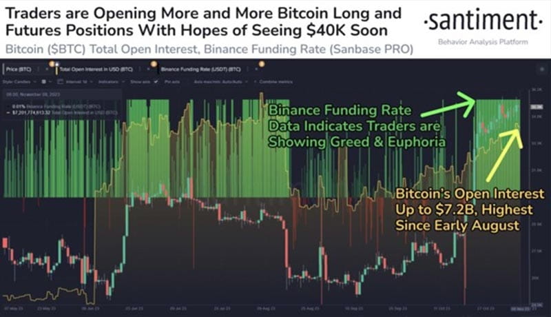 Dans le même temps, les données de la plateforme d'analyse de Santiment montrent également que les traders ouvrent de nouvelles positions d'achat alors que le prix du Bitcoin augmente récemment. À cet égard, il convient de noter que l’intérêt ouvert du Bitcoin a atteint 7,2 milliards de dollars, soit le niveau le plus élevé depuis début août.
