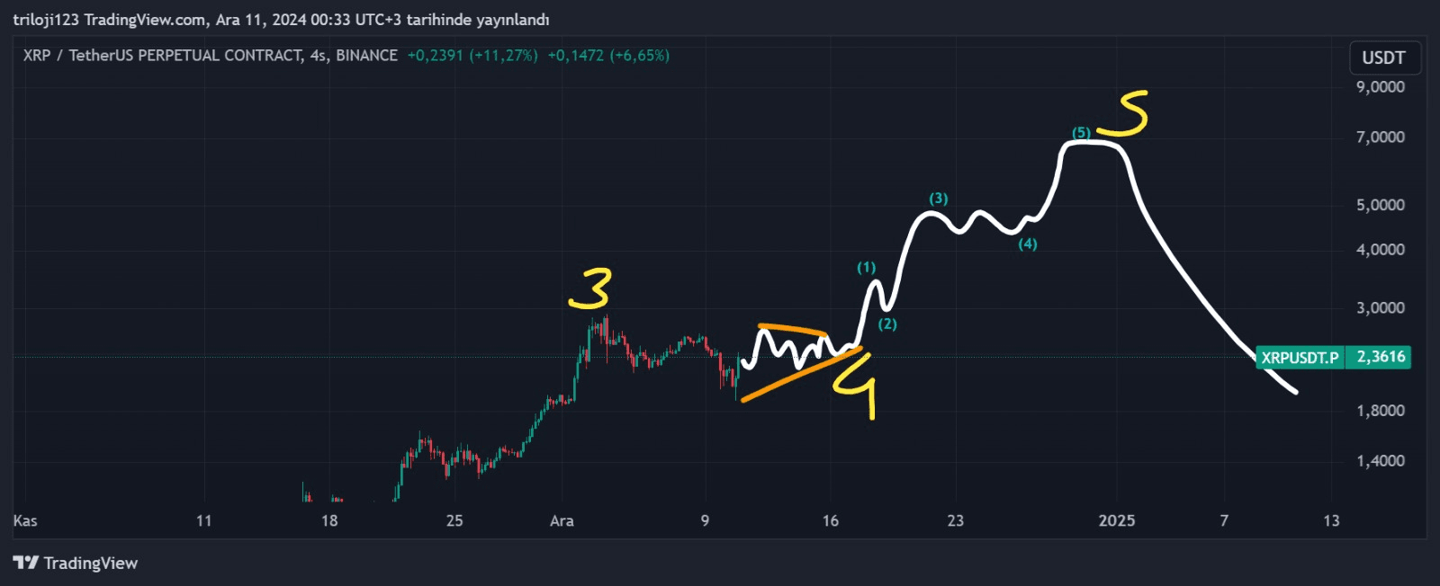 Selon la théorie des vagues d'Elliott, XRP a le potentiel d'atteindre 6-7 USDT d'ici la fin de l'année. Le graphique indique une forte troisième vague (Vague 3), qui représente un puissant mouvement à la hausse. Après une légère correction (Vague 4), la cinquième vague (Vague 5) devrait propulser XRP vers de nouveaux sommets. Ce momentum à la hausse est anticipé à mesure que nous approchons de la fin de l'année.