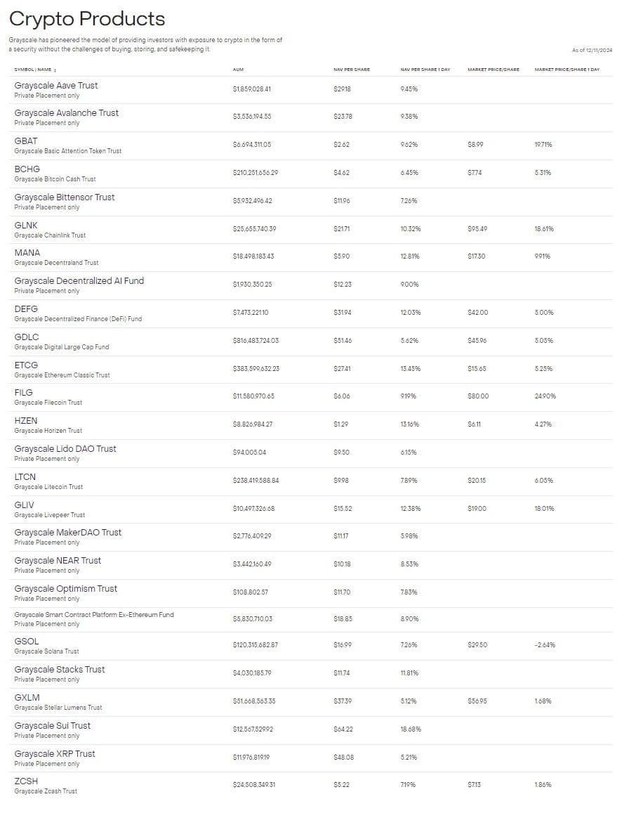 Ces deux fonds continuent de s'ajouter au portefeuille de produits exclusifs de crypto-monnaie de Grayscale.