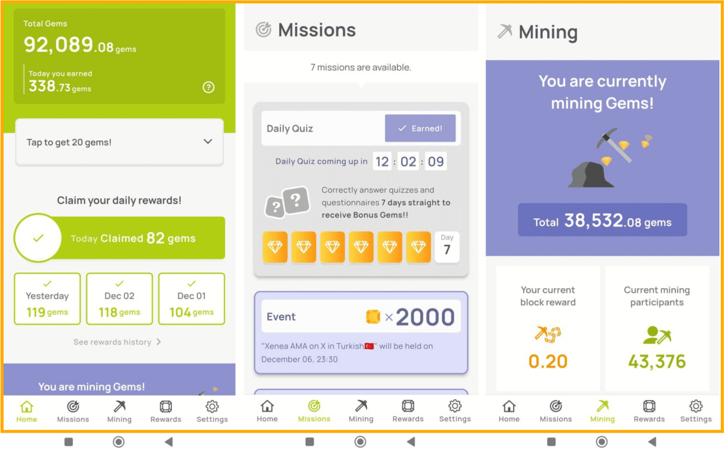 1. Gagnez l'airdrop $XENE Les gemmes que vous collectez maintenant détermineront le montant de $XENE que vous recevrez lors du prochain airdrop.