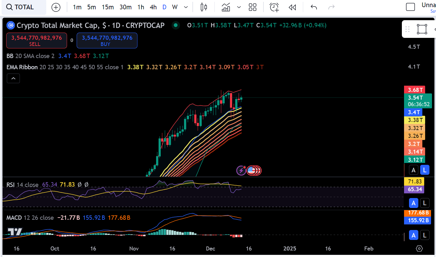 Nous pouvons voir que la capitalisation totale du marché est haussière, donc cela signifie que le BTC va monter.