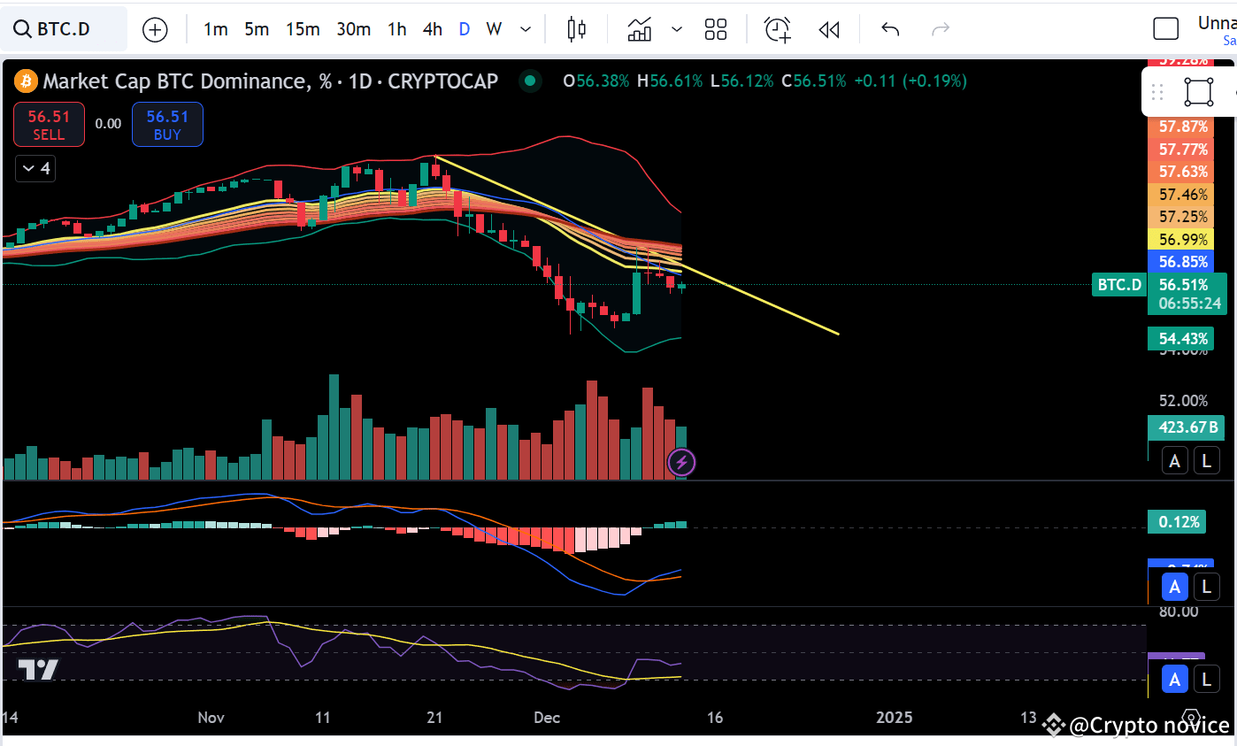 Ici, nous pouvons voir que la dominance du BTC est baissière, ce qui signifie que les altcoins vont monter.