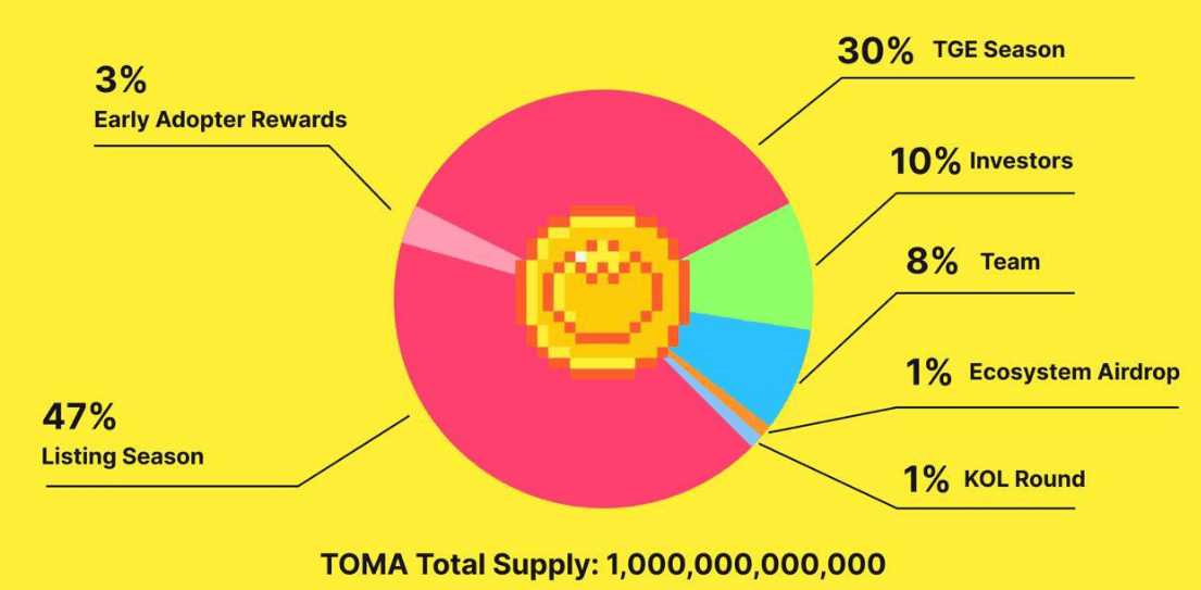 Auparavant, l'équipe prévoyait de lancer le jeton TOMA sur la blockchain TON, mais cela a maintenant changé pour l'Aptos. Avec une forte allocation à la communauté, cela va être l'un des plus grands airdrops de cryptomonnaies, surtout avec la catégorie des jeux Telegram, dans laquelle Hamster Kombat et X Empire ont eu lieu.