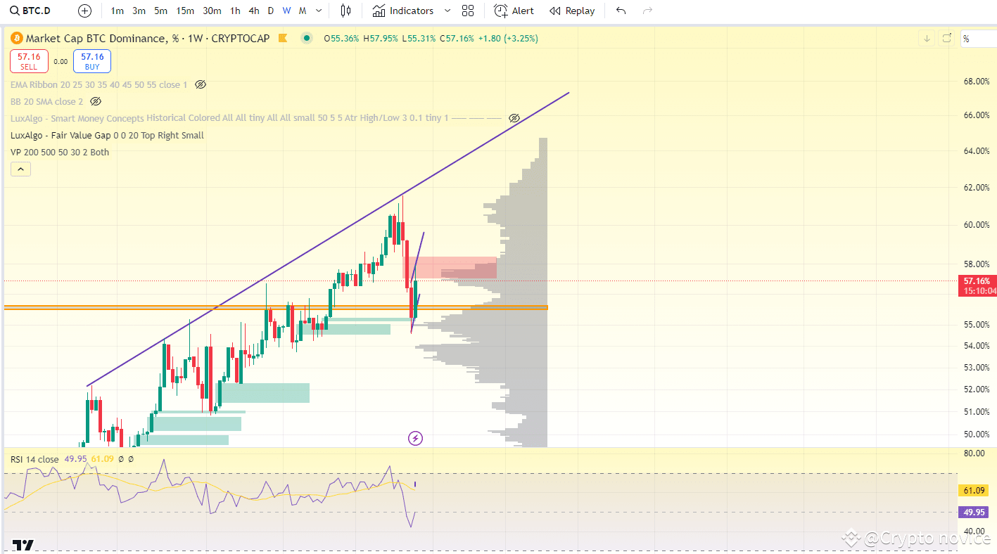 Nous pouvons voir que la dominance de BTC est haussière. Donc le marché peut baisser un peu.