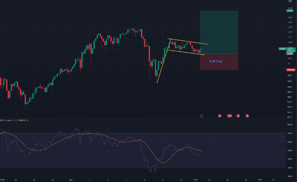 Le graphique montre LINK formant un motif de drapeau haussier, un signe de mouvement ascendant continu. Après une forte hausse, le prix évolue dans un canal descendant. Le RSI à 49,24 indique un momentum neutre, laissant place à la croissance. Une rupture au-dessus du canal pourrait viser une capitalisation boursière totale de 1,22 T$, confirmant un sentiment haussier.