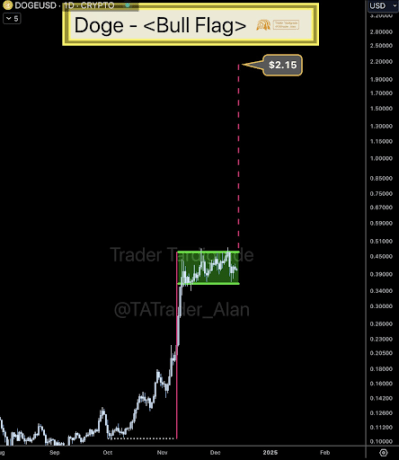 Pendant ce temps, comme Trader Tardigrade, KrissPax a également souligné le drapeau haussier qui s'est formé sur le graphique journalier de DOGE. Il affirme que cette tendance haussière indique que le prix du Dogecoin atteindra 0,69 $ d’ici la fin de l’année. Cela rapprocherait le Dogecoin de son niveau record actuel (ATH) de 0,73 $.
