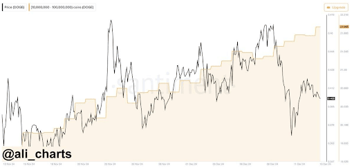 Les crypto-baleines semblent se positionner pour cette course haussière du Dogecoin. L'analyste des crypto-monnaies Ali Martinez a révélé que ces investisseurs avaient acheté 160 millions de DOGE en 24 heures.