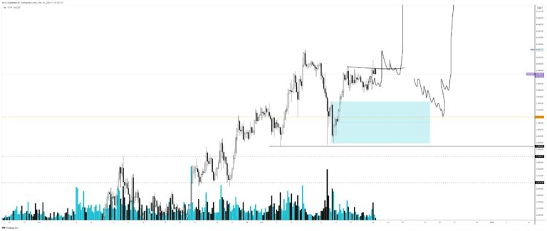 Dans ce cas, on observe une accumulation quotidienne de minima. Ce serait bien si le prix pouvait les retirer et obtenir une réaction dans le bloc journalier. Vous pouvez ensuite essayer d’ouvrir une position longue avec un objectif de 4 093 $.