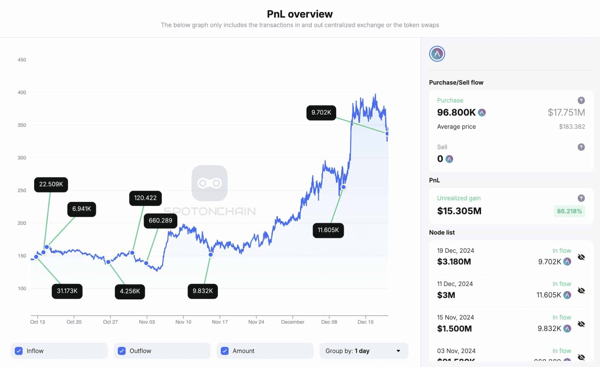Les baleines et les traders DEX intelligents sont revenus sur le marché après des ventes précédentes à des prix autour de 368 $ et 381 $. Plus de 3,2 millions de dollars d'AAVE ont été achetés en une seule journée.
