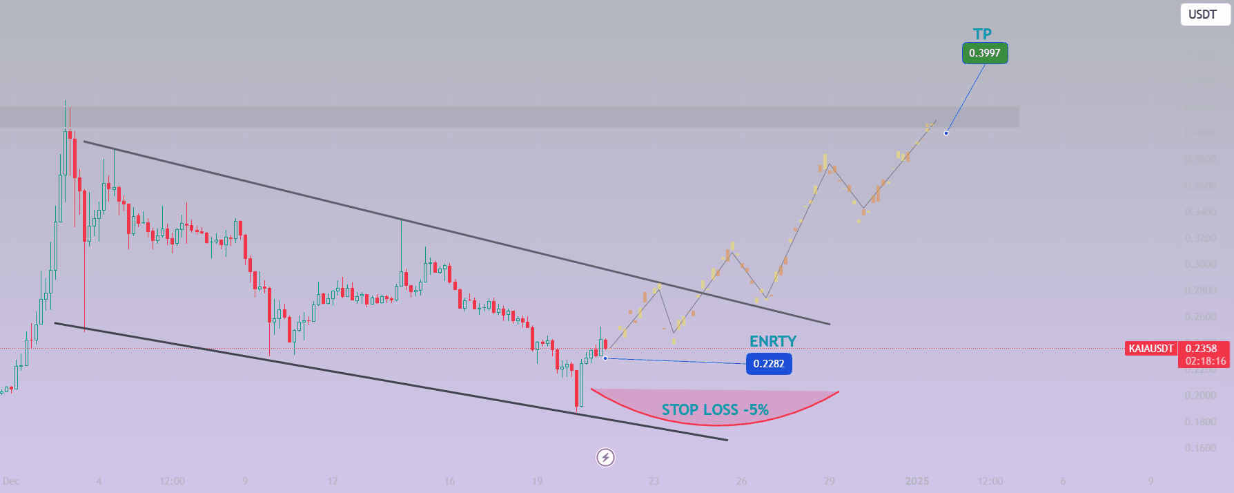 KAIAUSDT montre des signes potentiels de retournement haussier, soutenus par le modèle de canal et l'analyse du volume. Les traders doivent surveiller la confirmation de la rupture tout en alignant leurs trades avec les niveaux d'entrée, de stop-loss et d'objectif définis.