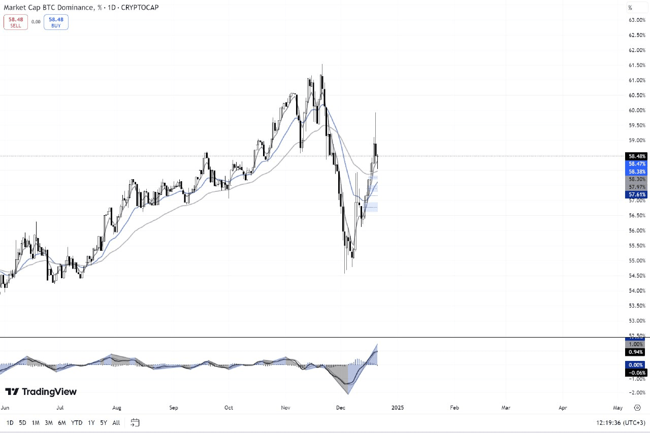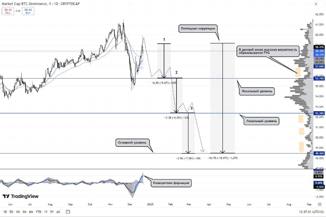 La domination de $BTC sur le graphique montre des signes du début d'un mouvement correctif, ceci est confirmé par la formation d'inversion MACD.