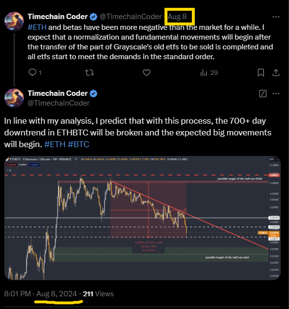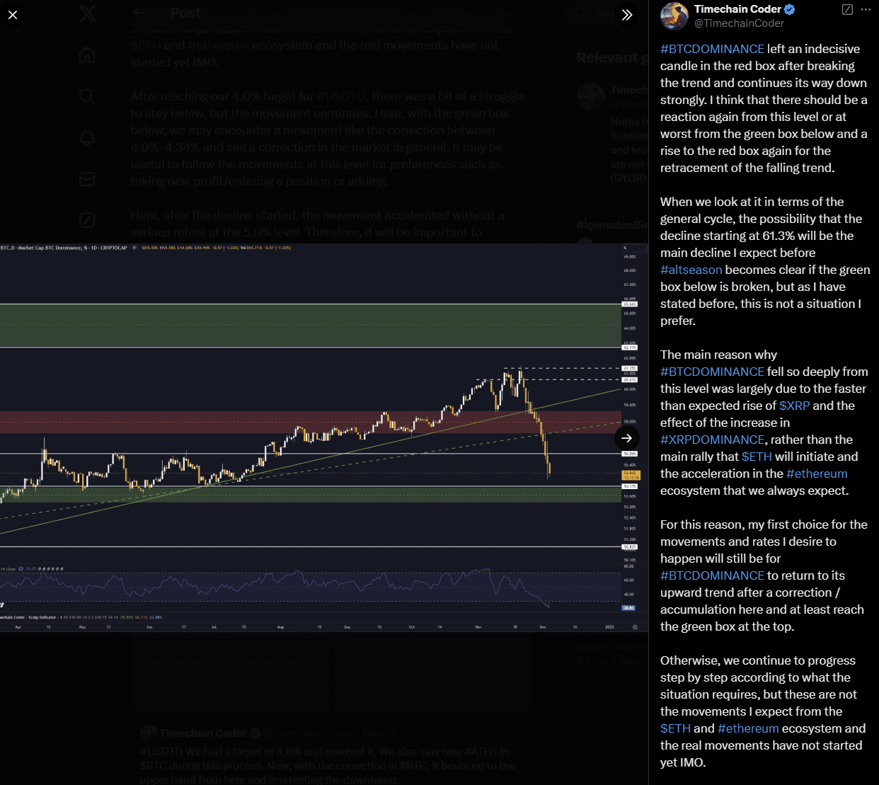 J'exprime tout cela depuis le début de la période où j'ai commencé à partager sur les réseaux sociaux et j'explique que je ne m'attends pas à un méga bull sur l'ETH et les altcoins tant que ces conditions ne sont pas remplies. J'ai exprimé et rappelé à plusieurs reprises quand s'attendre et quoi suivre pour comprendre que cette période est arrivée.
