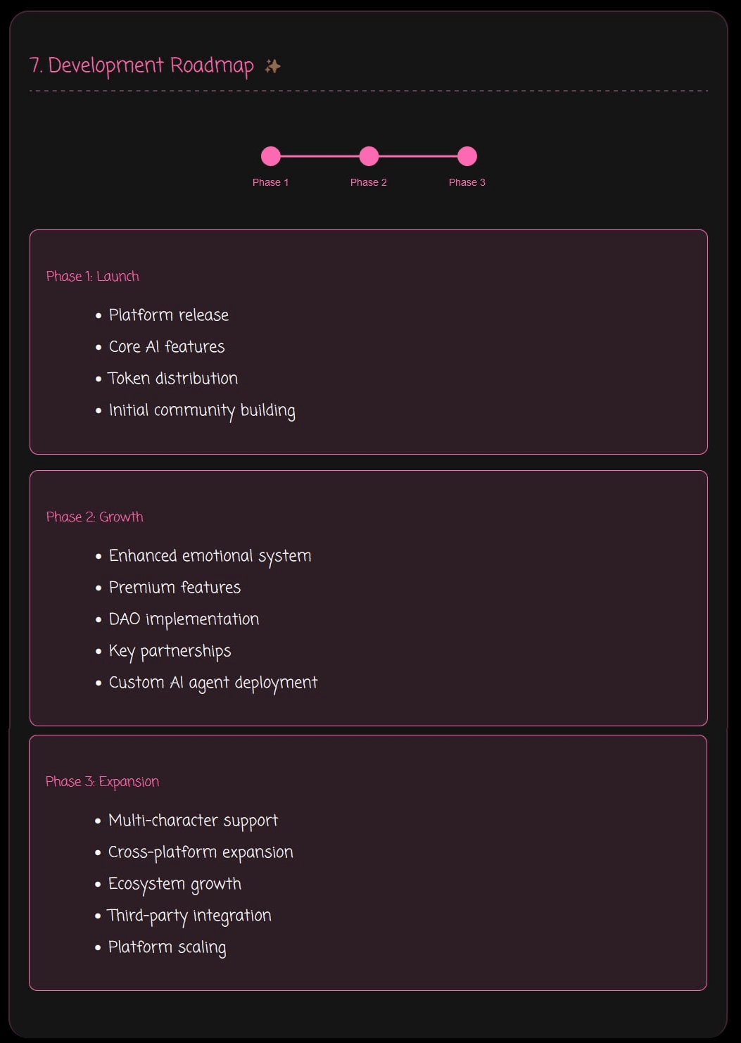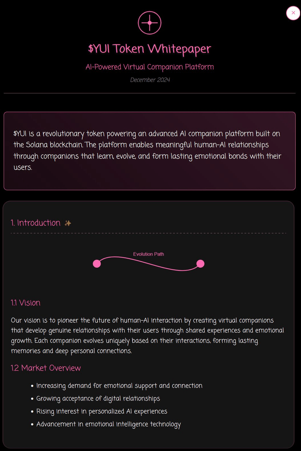$YUI envisage un avenir dans lequel les compagnons IA forment de véritables liens émotionnels à travers des expériences partagées et une croissance adaptative. Chaque compagnon évolue de manière unique, grâce à $YUI, qui permet des fonctionnalités, des récompenses et une gouvernance au sein de l'écosystème.