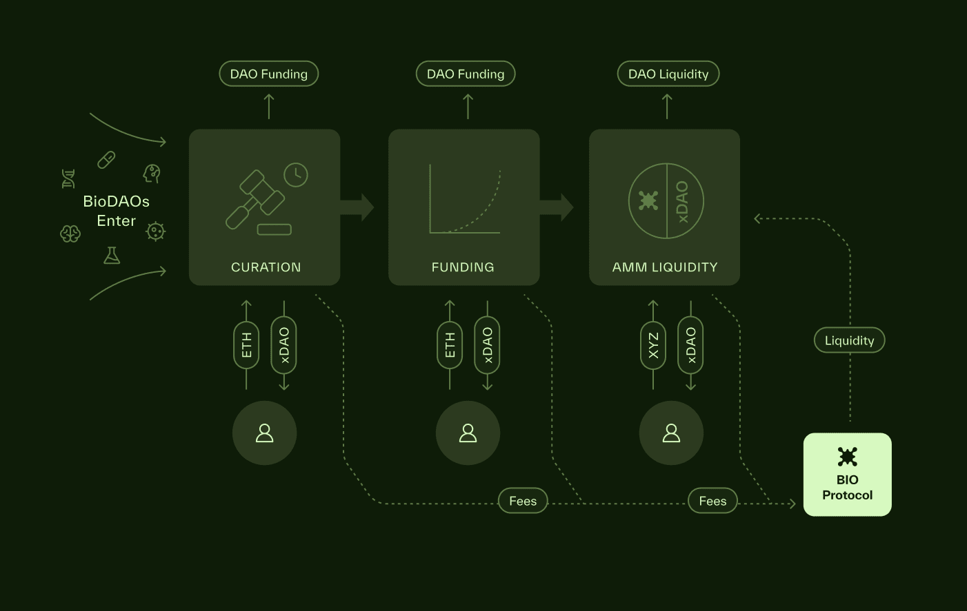 Les BioDAO de cet écosystème lèvent des capitaux grâce à la vente de jetons, utilisent des fonds pour mener des recherches et partagent les bénéfices des résultats de la recherche avec leurs membres. Grâce à son processus de financement et de gestion de la recherche sur la blockchain, BIO Protocol garantit la transparence, augmente l'accessibilité des données et favorise la participation à la communauté mondiale du savoir.