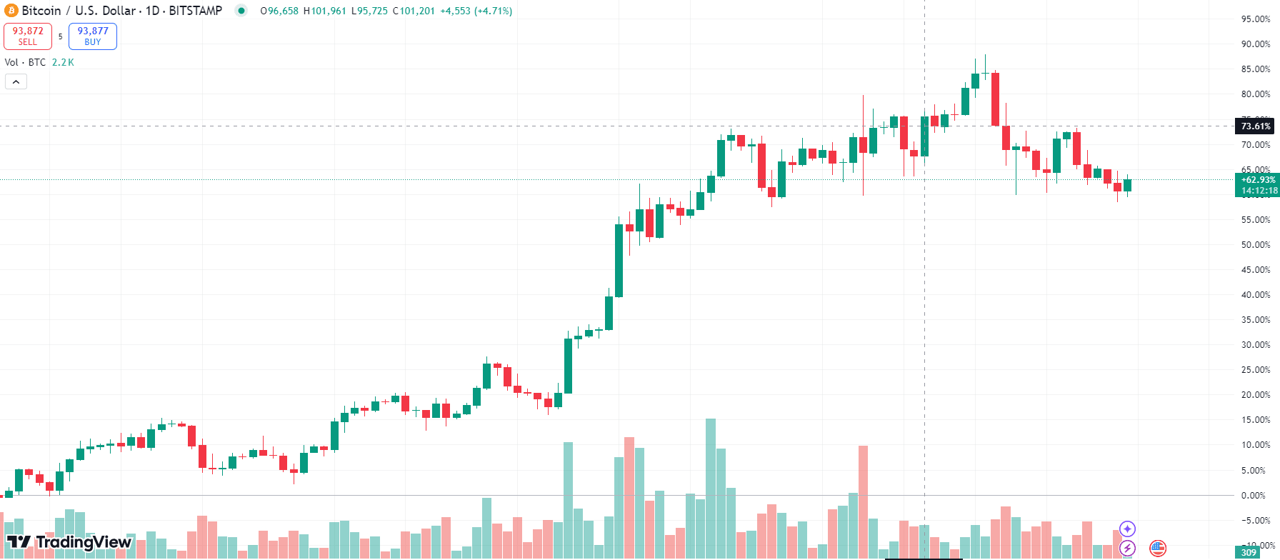Le Bitcoin (BTC), actuellement au prix de 94 243 $, rebondit après sa récente correction de 10 % après avoir atteint un sommet historique de 108 300 $ le 17 décembre. 🚀 Mais les taureaux ne sont pas encore finis.