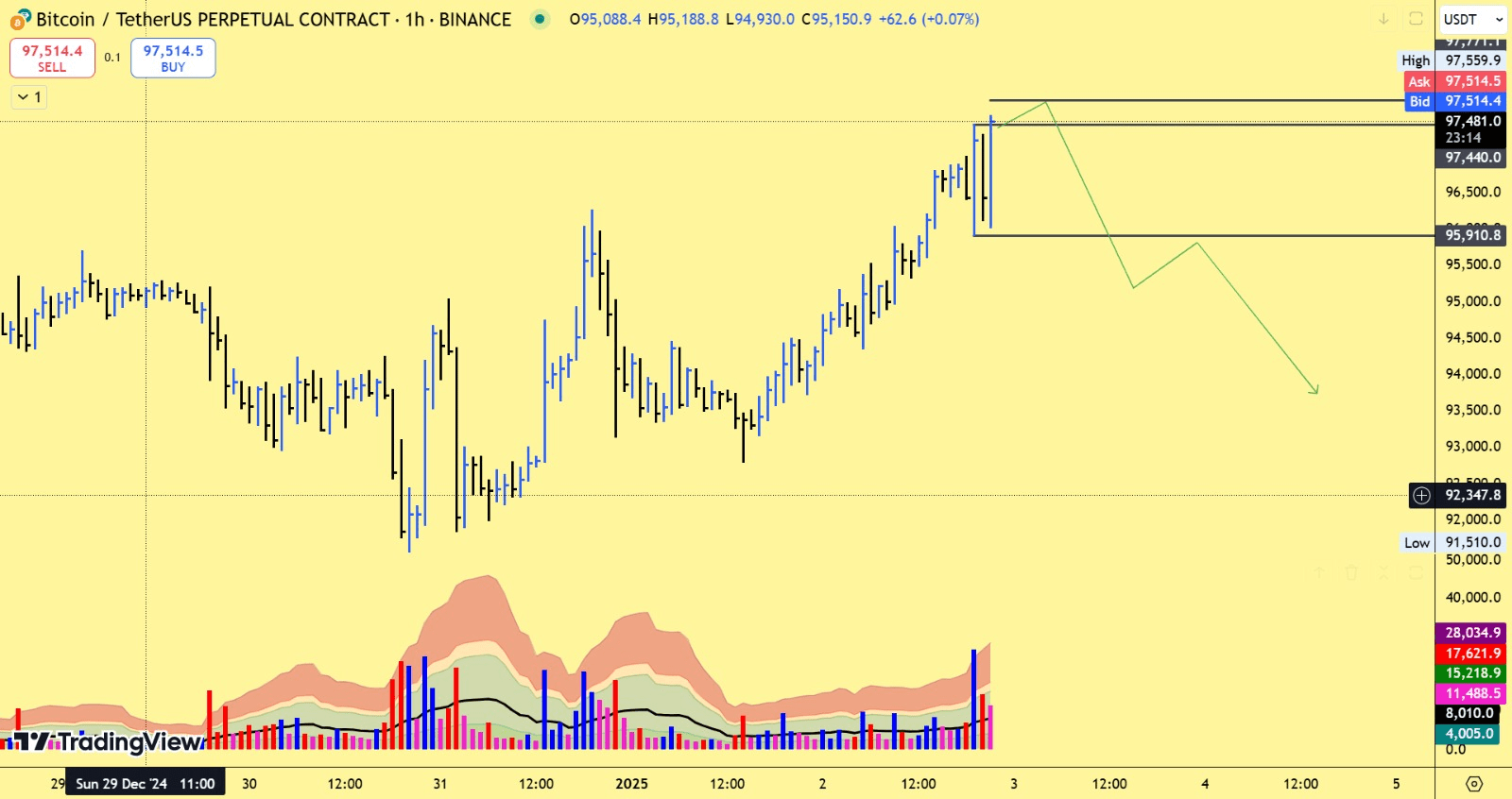 La décision finale est que nous pouvons voir une baisse jusqu'à 94 600 $ et 92 250 $. Si vous trouvez ce post utile, n'oubliez pas d'aimer le post et de suivre pour plus de mises à jour.