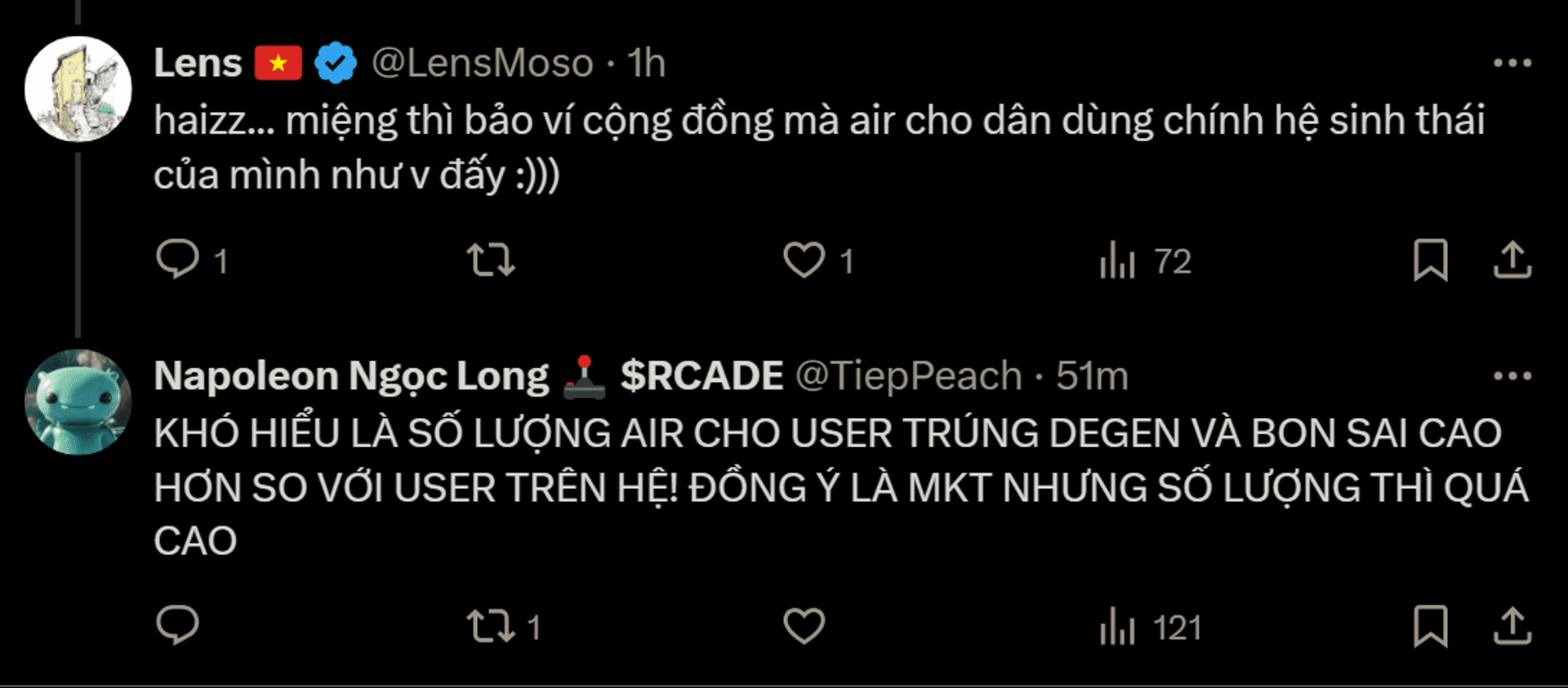 Bien que certains utilisateurs aient été heureux de recevoir les jetons, beaucoup d'autres ont exprimé leur déception et leur indignation de ne pas être éligibles à l'airdrop malgré leur conviction d'avoir respecté les critères fixés par le projet.