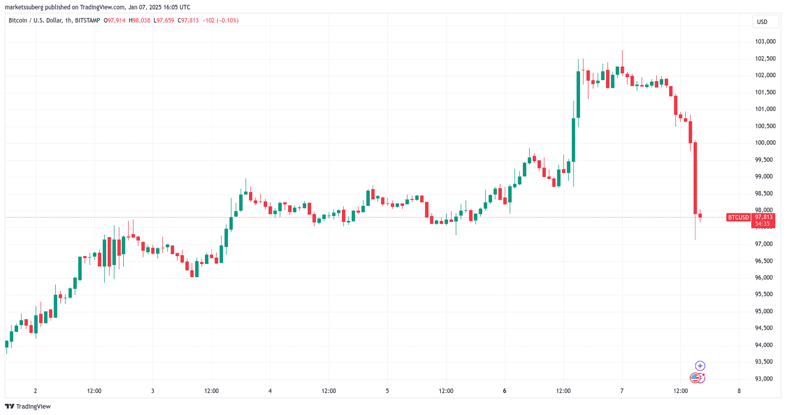 Le BTC tombe en dessous de 98 000 $ après le rapport JOLTS 📉