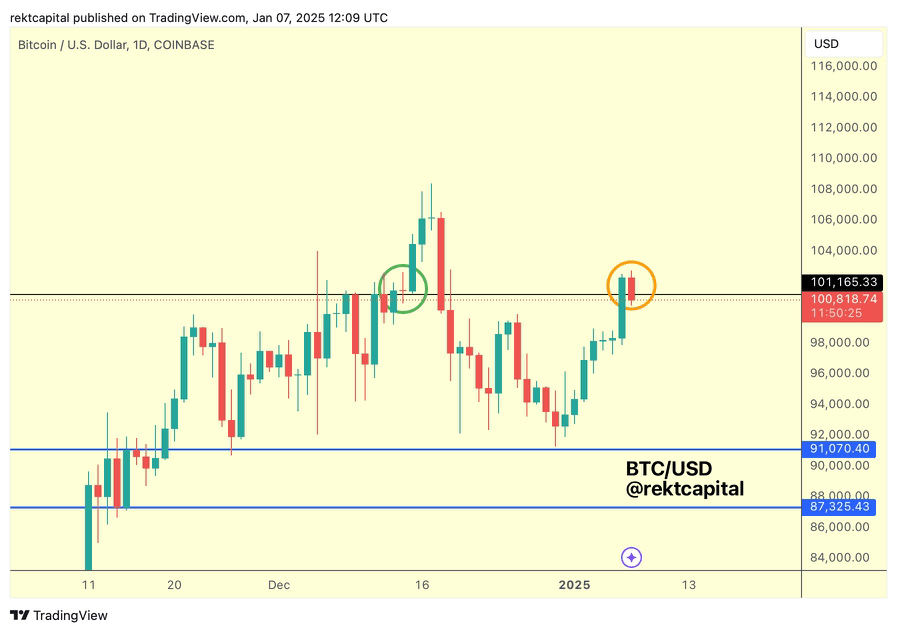 “Une clôture quotidienne au-dessus de 101 165 $ est nécessaire pour confirmer un retest réussi.”