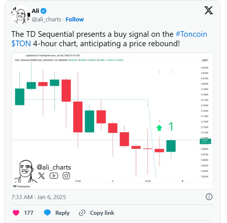 L'indicateur TD Sequential a affiché un signal d'achat sur le graphique de 4 heures, suggérant un changement de momentum de baissier à haussier.