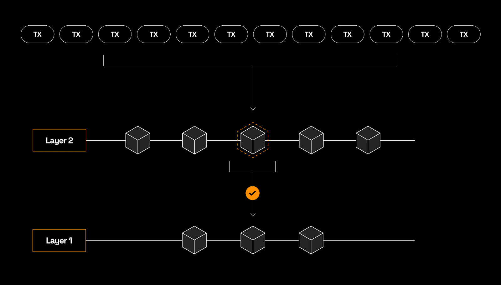 Les transactions sont exécutées sur la chaîne de rollup, et après traitement, le rollup soumet une preuve cryptographique du lot de transactions à la blockchain Bitcoin. Cela réduit le besoin que chaque transaction individuelle soit enregistrée sur le réseau principal Bitcoin, améliorant ainsi la scalabilité.