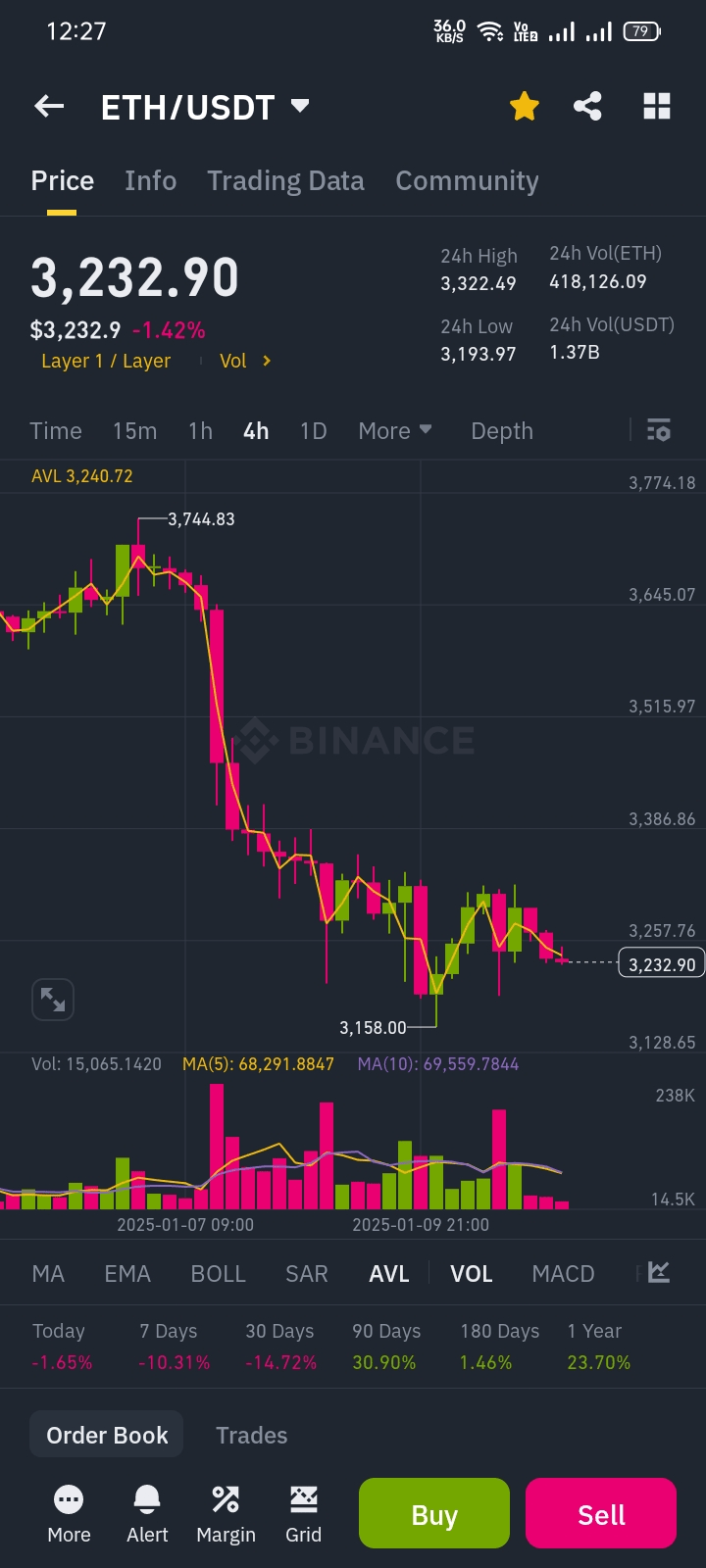 Comme le montre le graphique, le prix de l'ETHEREUM est arrivé à 3232,90 et à mon avis, il augmentera d'environ 4000 dollars 💰.