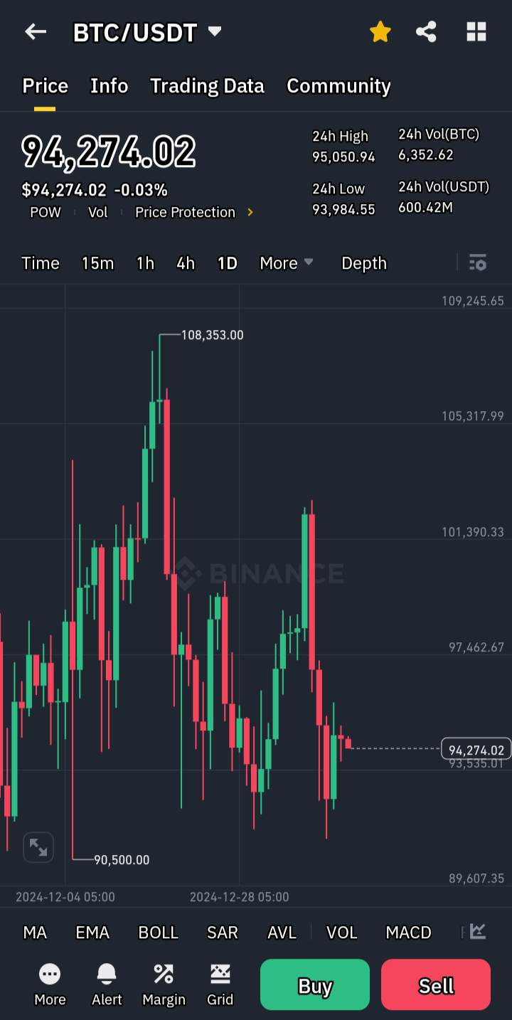 Plus bas sur 24 heures : 93 984,55 USDT