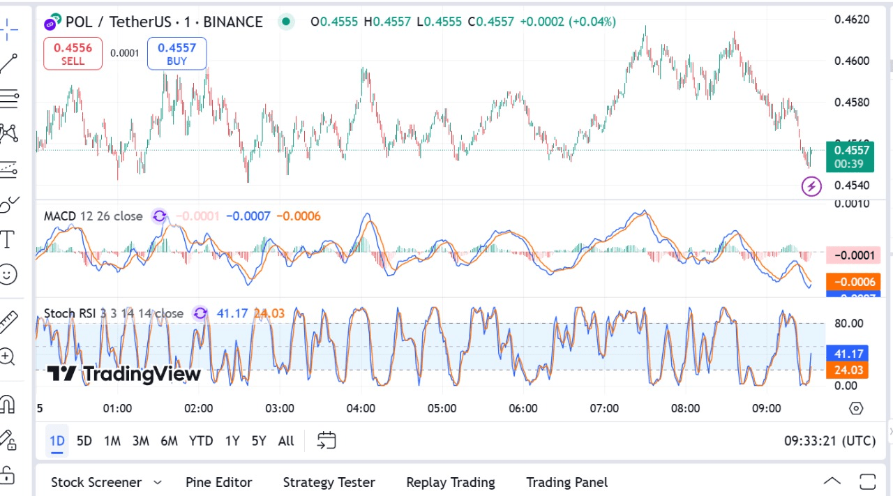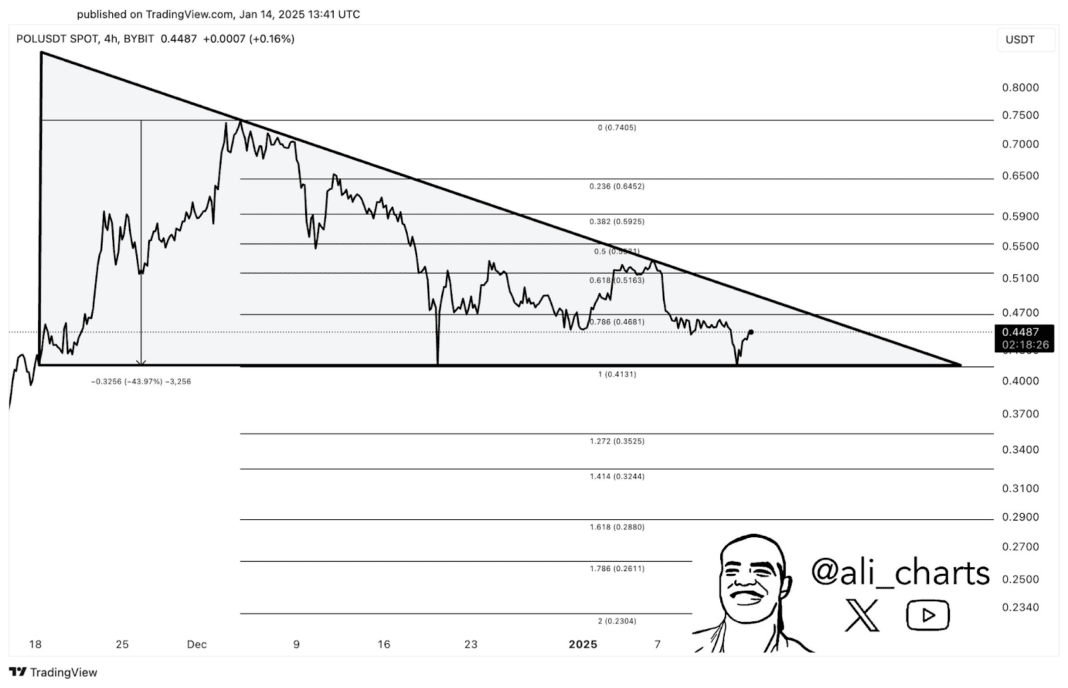 La consolidation du prix de Polygon suggère un franchissement imminent, mais la direction dépend de la première rupture de la résistance à 0,47 $ ou du support à 0,41 $. Les analystes et les traders surveillent de près ces niveaux pour des signes de renversement ou de continuation de tendance.