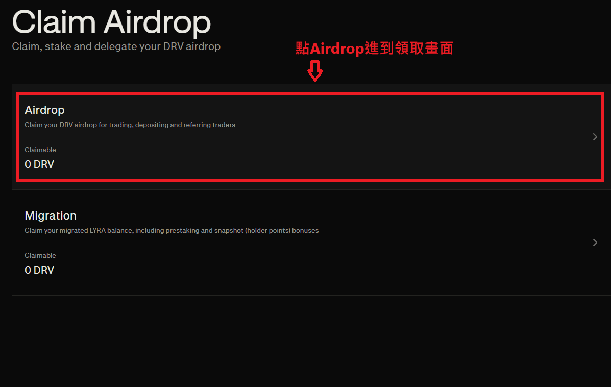 Pour obtenir l'airdrop sans en obtenir 25% supplémentaires, vous pouvez choisir de ne pas le réclamer, ainsi, vous pourrez directement obtenir DRV.