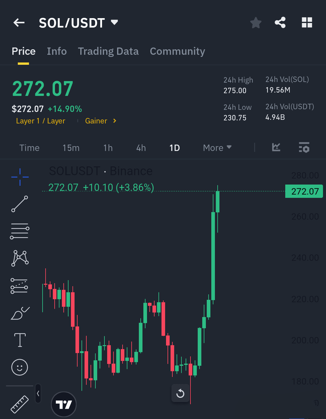 Avec le jeton Trump, les achats de Solana augmentent. La forte demande exerce une pression à la hausse sur le prix.Hype des Memecoins : Les memecoins, en particulier ceux associés à des figures de haut niveau ou des sujets tendance comme Trump, connaissent souvent un intérêt spéculatif et une augmentation du volume de trading, renforçant encore le rôle de $SOL sur le marché.