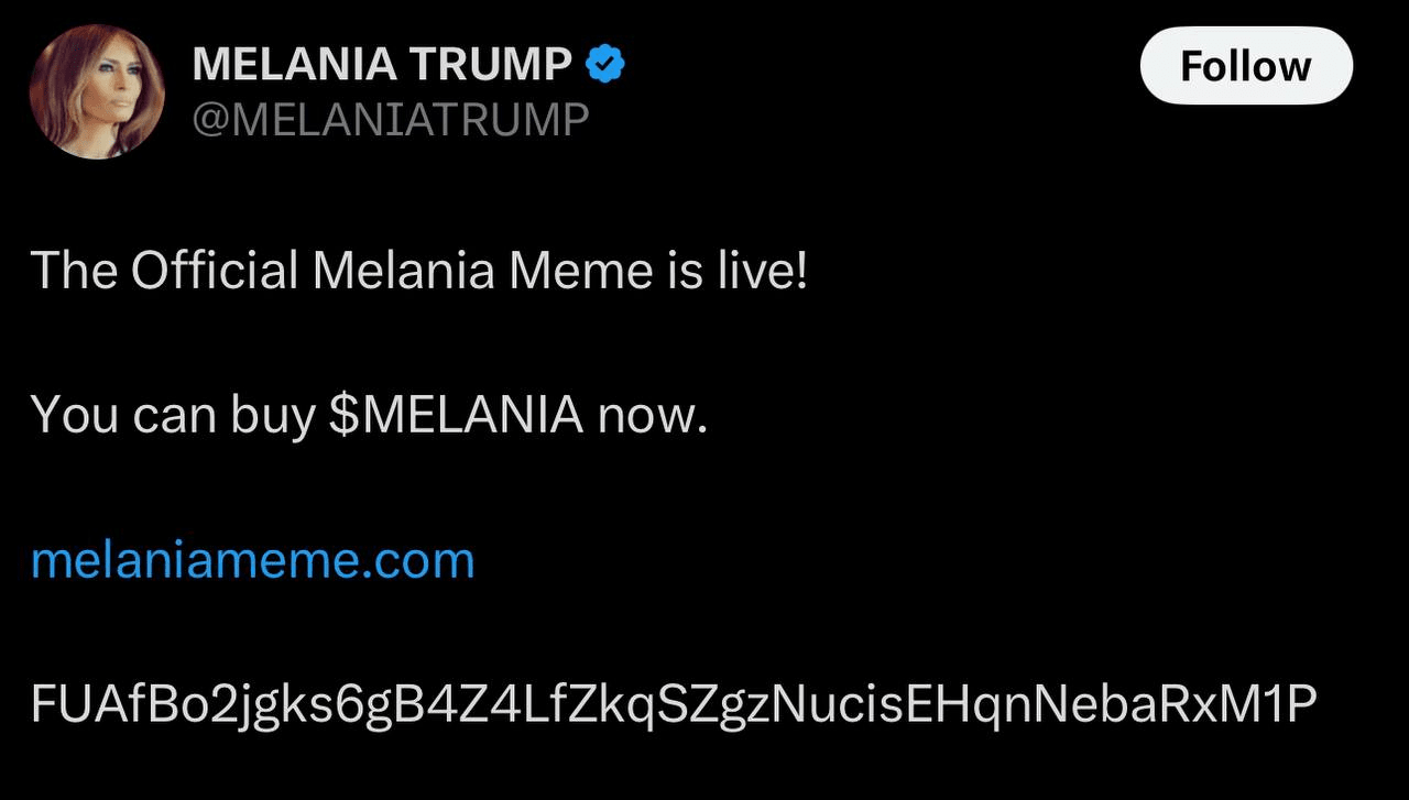 En résumé, l'incursion de Melania Trump dans l'espace des cryptomonnaies avec le token MELANIA a suscité une attention significative, faisant écho à l'introduction antérieure du token TRUMP par Donald Trump. Les deux tokens ont connu une activité de marché substantielle, reflétant la nature dynamique du marché des cryptomonnaies.