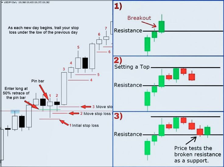 Exemple : Si le prix dépasse 100 $ et reteste 100 $, cela devient une forte opportunité d'achat.