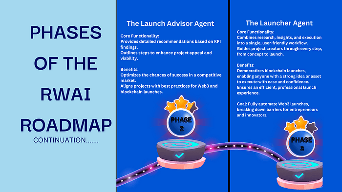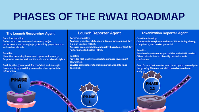 À travers sa feuille de route évolutive, RWAI ajoute de nouvelles capacités par phases, visant à automatiser entièrement le parcours de l'idée au lancement réussi sur blockchain. Cette innovation est destinée à autonomiser les entrepreneurs, investisseurs et parties prenantes avec des outils pour réduire les risques, accélérer le temps de mise sur le marché et garantir le succès à long terme dans l'écosystème Web3.