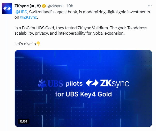 #UBS #Zksync #ORODIGITAL #bancosuizo