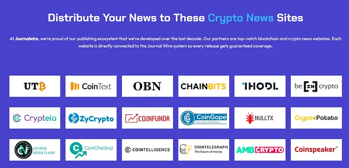 Placements médiatiques garantis — Faites-vous présenter dans des publications de premier plan comme CoinDesk, Cointelegraph, Bitcoinist, Be-In-Crypto, NewsBTC, et plus encore.