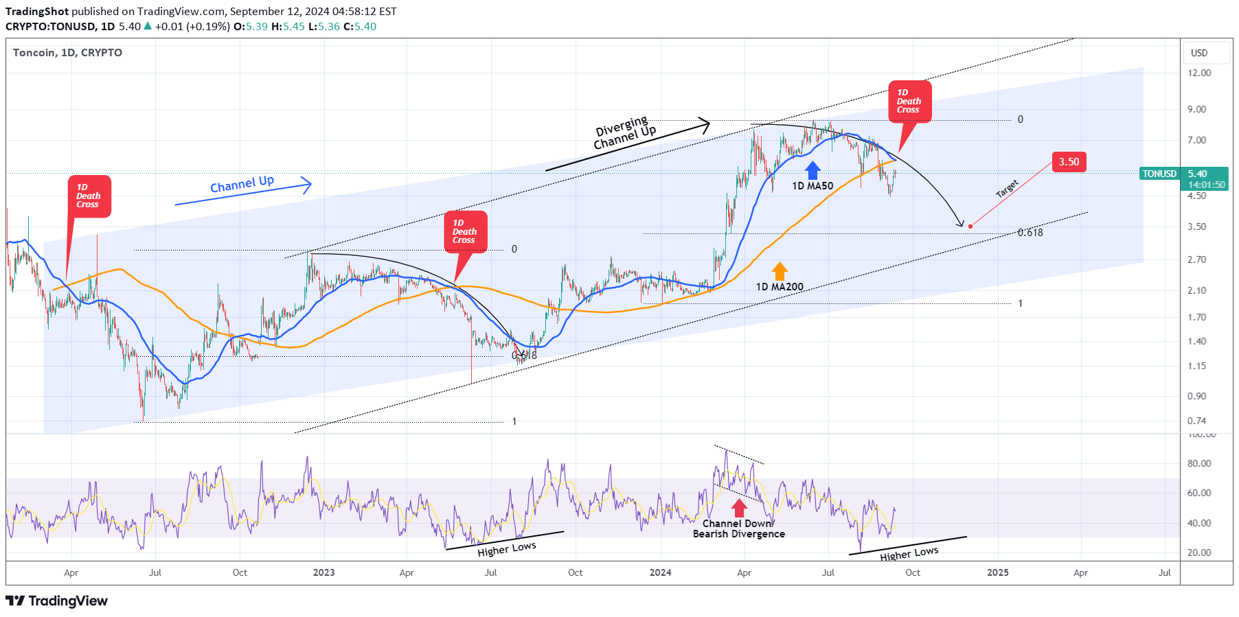Cela fait presque 5 mois (12 septembre, voir graphique ci-dessous) depuis la dernière fois que nous avons analysé Toncoin (TONUSD) et émis notre appel baissier :