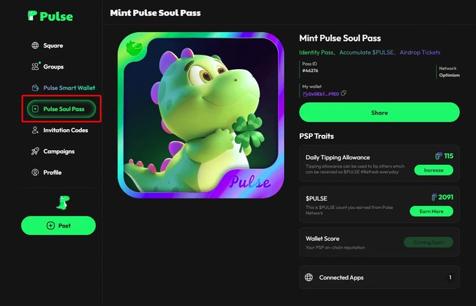 Pulse est une plateforme SocialFi de premier plan avec plus de 600 000 utilisateurs actifs par mois. Sa communauté dynamique comprend plus de 100 000 utilisateurs, 4 500 groupes et plus de 17 000 détenteurs de SoulPass, générant plus de 1,25 million de publications.