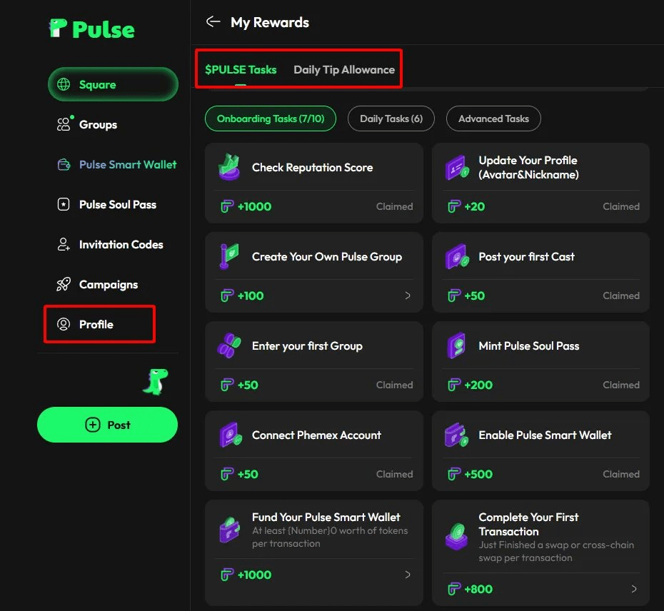 5. Complétez des tâches sociales pour gagner plus de $PULSE