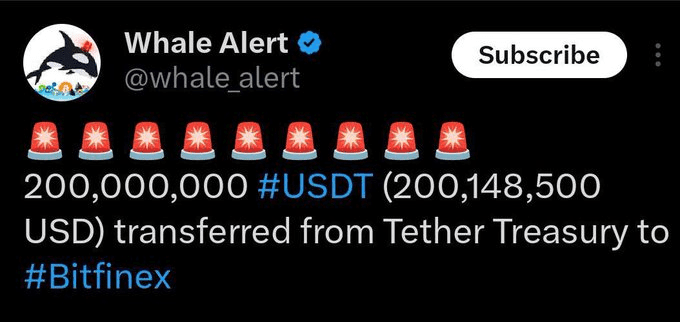 Un incroyable 200 millions de USDT vient d'atterrir sur Bitfinex, et cela pourrait être l'étincelle d'un grand rallye crypto ! De tels transferts de stablecoins importants signifient souvent que des baleines se préparent à acheter, poussant potentiellement le Bitcoin et les altcoins à la hausse. Si le Bitcoin casse des niveaux de résistance clés, attendez-vous à une vague d'achats FOMO, faisant grimper les prix rapidement. Traders, c'est votre moment !