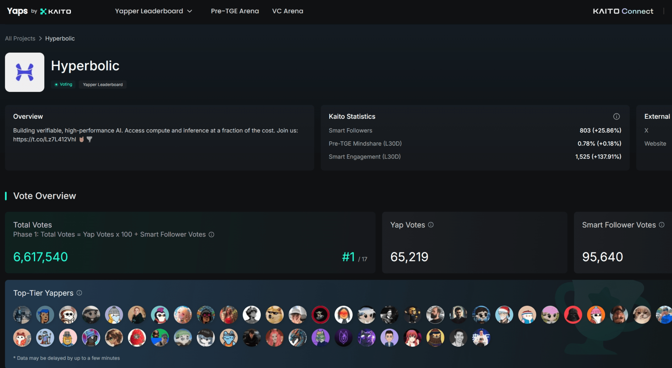 Le projet qui a remporté le vote du dernier numéro de #KaitoAI est #Hyperbolic , et Momo a également voté pour lui avec ses maigres yaps.