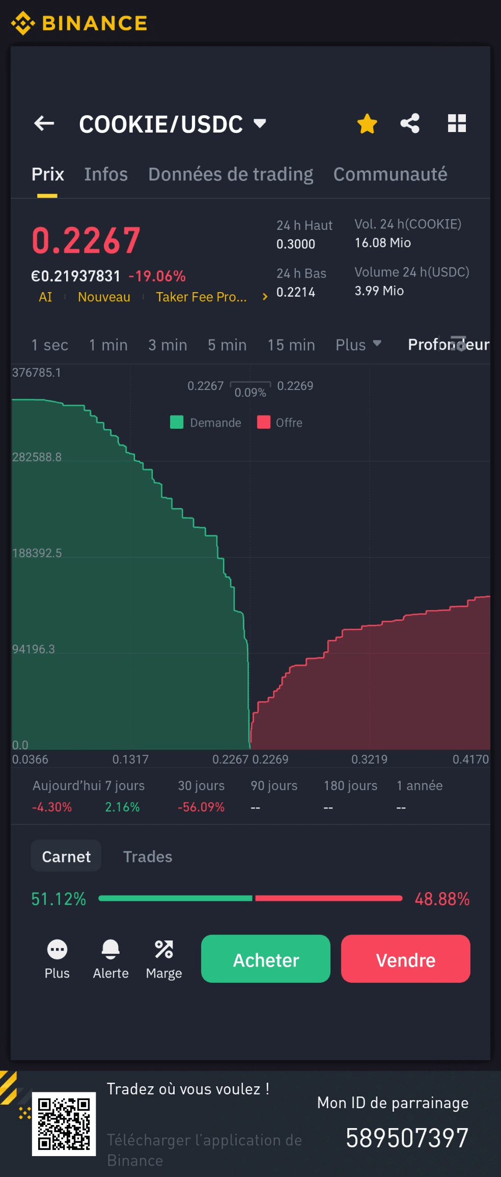 | Prix (USDC) | Quantité COOKIE | Montant |