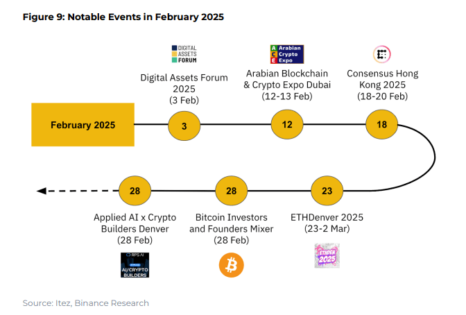 Événements clés de février : Digital Assets Forum, Arabian Blockchain Expo, ETHDenver (Fig. 9).